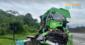 ENGAVETAMENTO DE CARRETAS DEIXA FERIDO NA VIA ANCHIETA, SP.