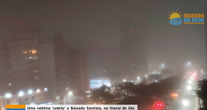 Uma neblina ‘cobriu’ a Baixada Santista, no litoral de São Paulo,...