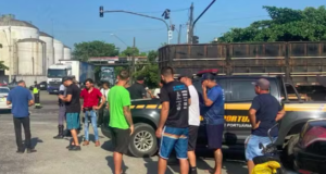 Caminhoneiros fazem paralisação por melhores condições de trabalho, em Santos, SP