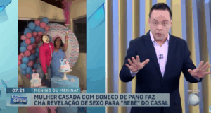 Mulher casada com boneco de pano, realiza chá revelação para seu...