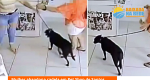 Mulher abandona cadela em pet shop de Santos,SP