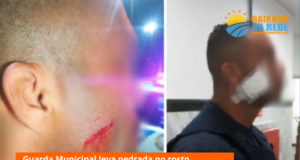 Agente da GCM de Praia Grande, SP leva pedrada no rosto...