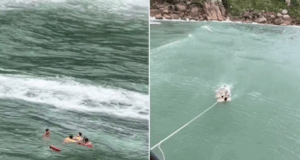 Turista arrastado por correnteza é resgatado com apoio do helicóptero Águia...