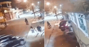 Motorista embriagado invade calçada e atropela casal com criança.