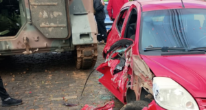 Na contramão; Tanque do Exército passa por cima de lateral de...