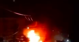 Incêndio destrói caminhão e atinge rede elétrica no litoral de SP.