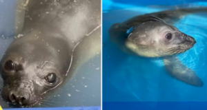 Elefante-marinho é resgatado em Guarujá no litoral paulista.