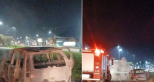 Veículo fica tomado pelo fogo após abastecer, no litoral de SP