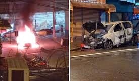 Incêndio destrói veículo no centro de São Vicente